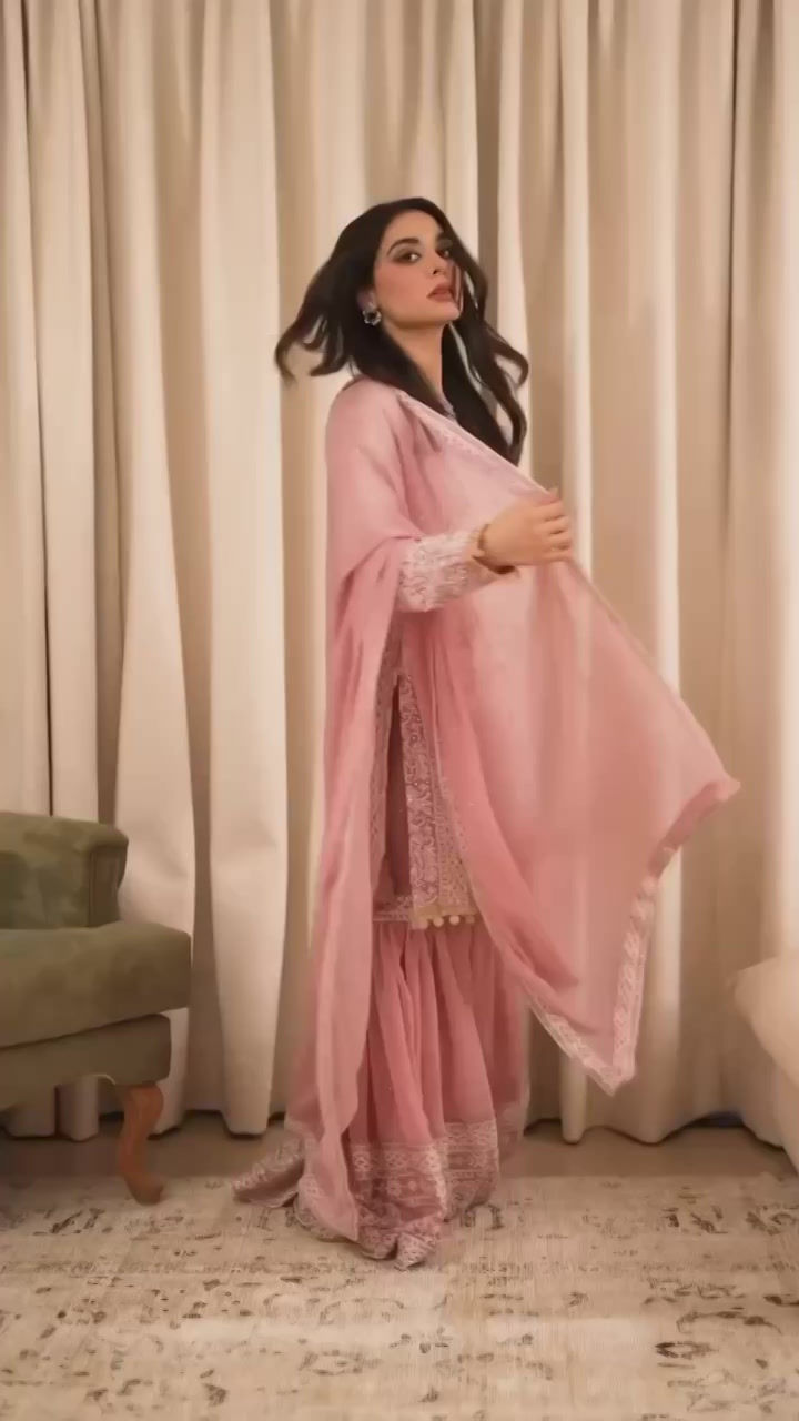 Real Mirror and Sequence Embroidery Work Sharara Suit For Women